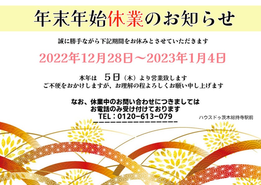年末年始の休業のお知らせです!