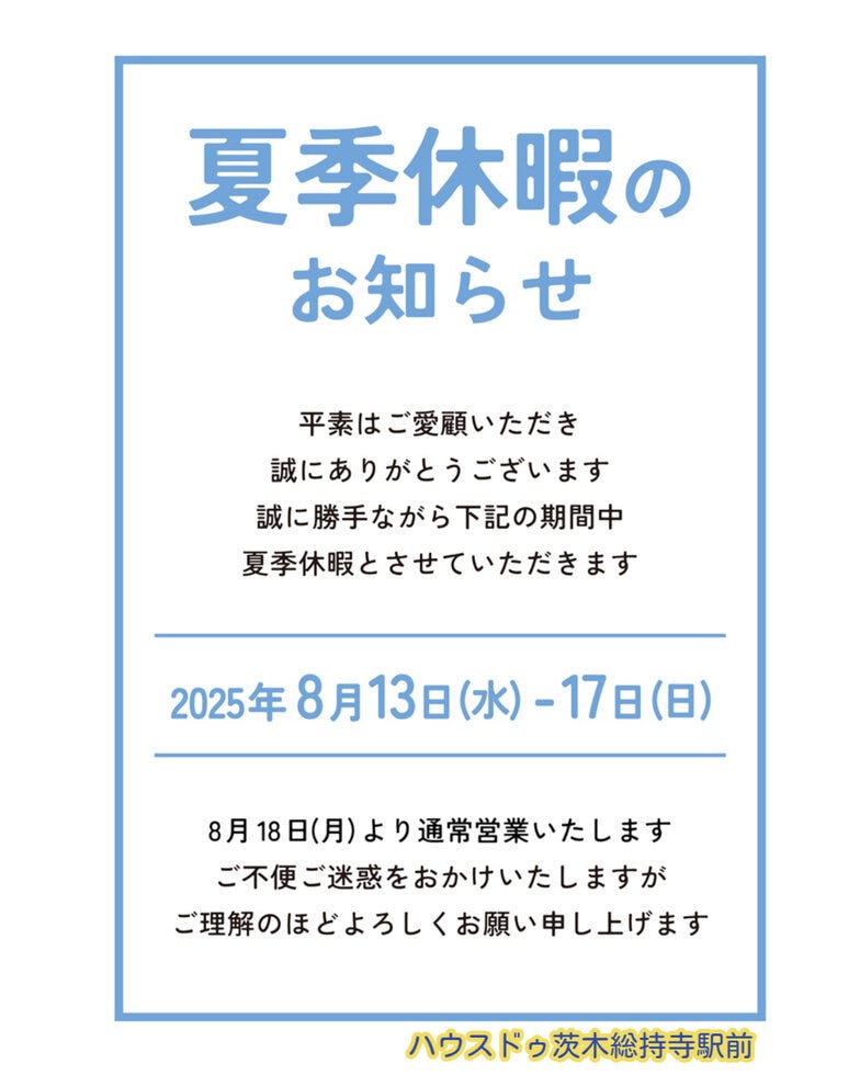 弊社では、誠に勝手ながら下記日程を夏季休業とさせていただきます。